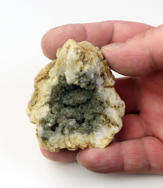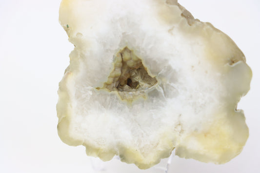 Žlutavý chalcedon v geodě leštěná