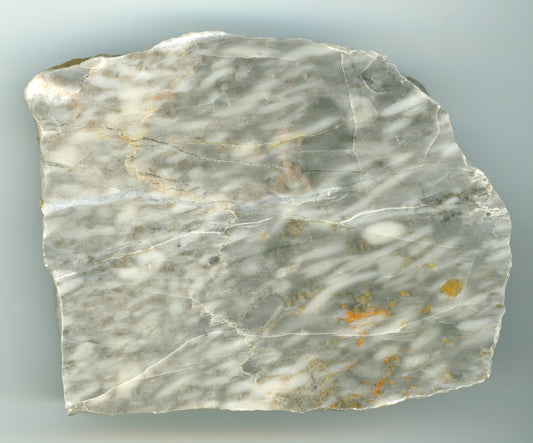 Habrůvecký vápenec se zkamenělinami a masivní kalcitovou žilou