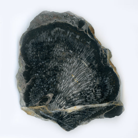 Vzácný deskatý korál rodu Heliolithes ve stínavsko-chabičovské břidlici