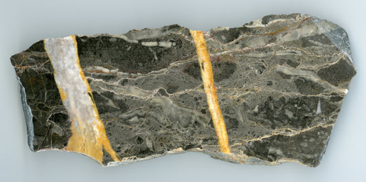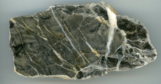 Habrůvecký vápenec se zkamenělinami a masivní kalcitovou žilou