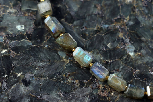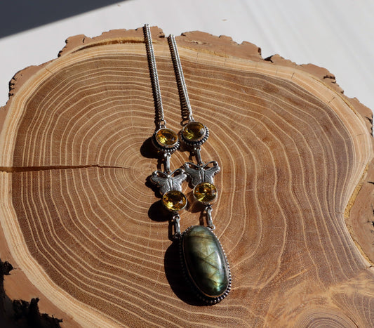 Náhrdelník labradorit a citrín – kabošon a fazet