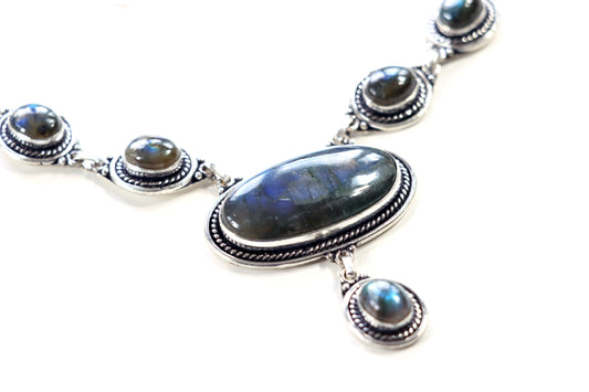 Náhrdelník s labradoritem – kabošony s duhovým leskem
