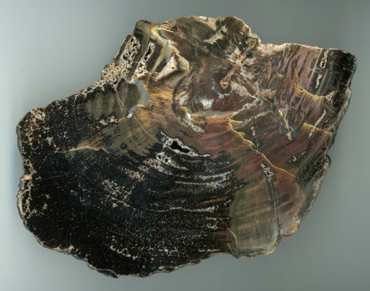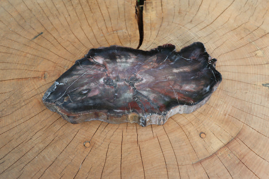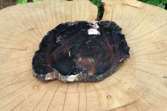 Leštěný muzejní zkřemenělý prvohorní jehličnan, střeďák