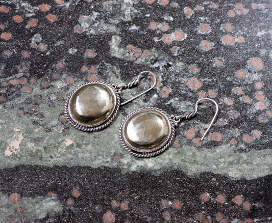 Náušnice "Sluneční zrcadla – Pyritové čočky"
