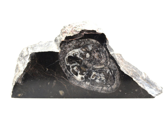 SlevaStojánek na tužky z oranžového vápenec se zkamenělinami