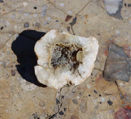 Rudická geoda perimorfóza křemene po kalcitu pokrytý chacedonem