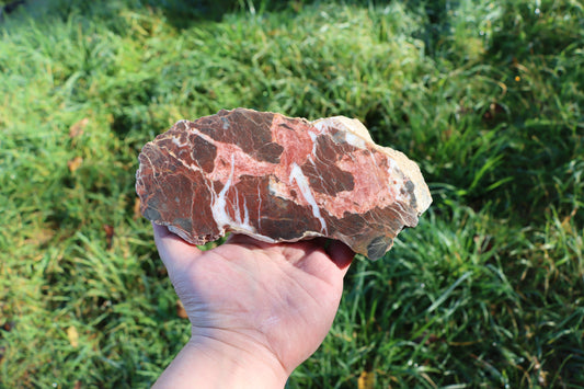Krvavý vápenec s červeným a bílým kalcitem