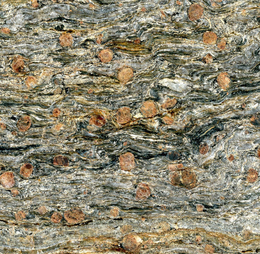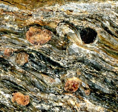 Svojanovit s almandinem, staurolitem a orthoklasem leštěný