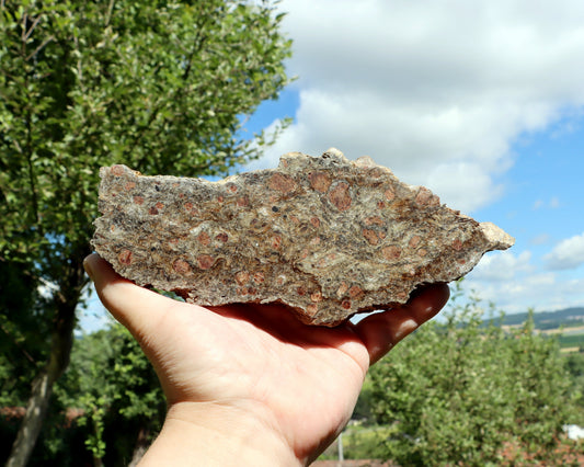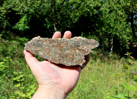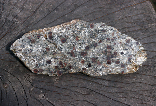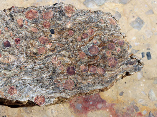 SlevaSvojanovit s almandinem, staurolitem a orthoklasem leštěný