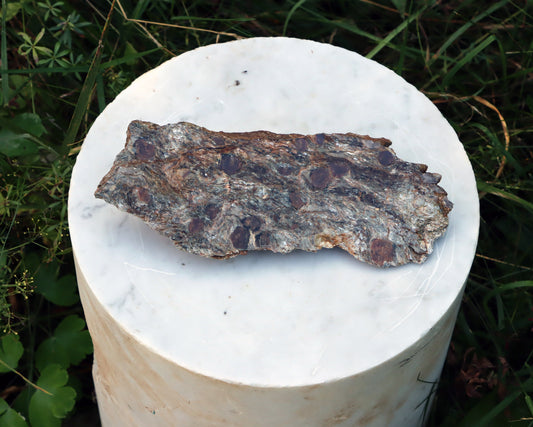 SlevaSvojanovit s almandinem a staurolitem leštěný