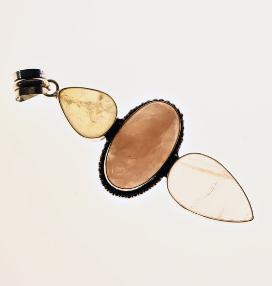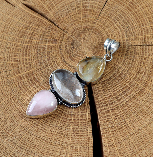 Přívěšek rutil v křišťálu rubín v zoisitu epidot v prehnitu