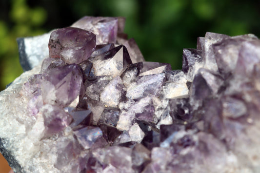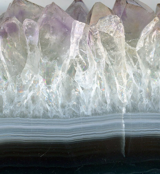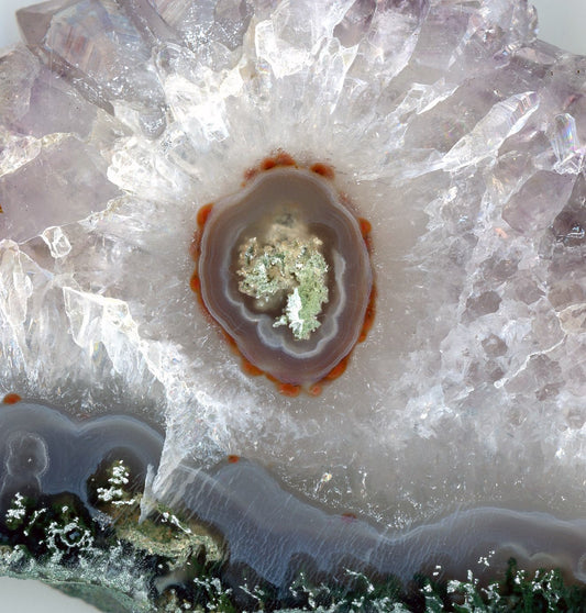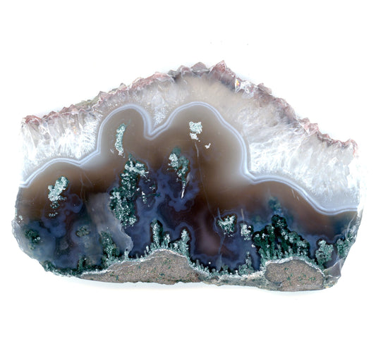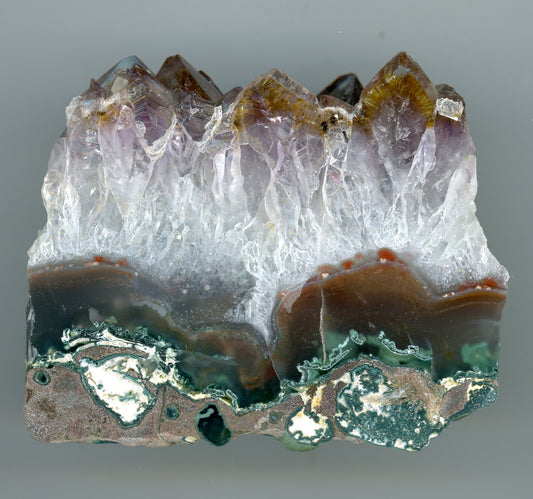 SlevaLeštěný ametyst s mechovým achátem a křišťálem