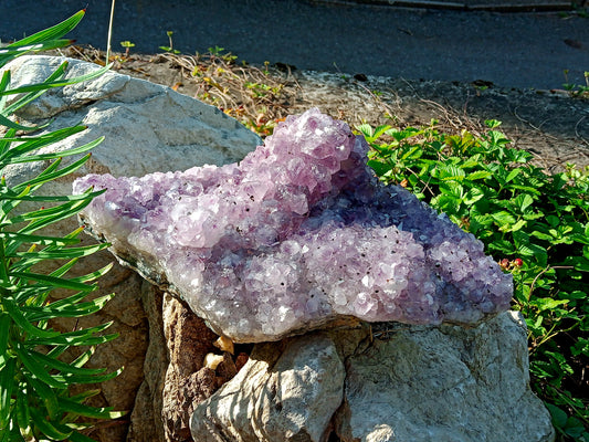 SlevaLeštěný ametyst s mechovým achátem a křišťálem
