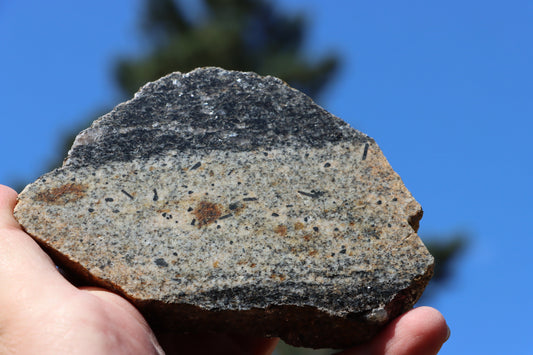 SlevaPegmatit písmenkový na kontaktu s amfibol rulou