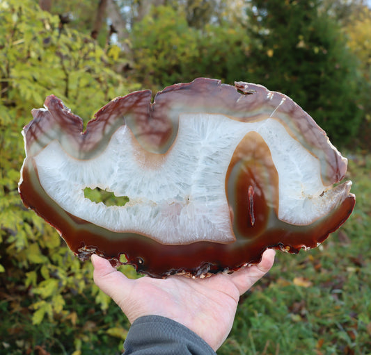 Achát červený s křišťálem oboustranně leštěný plátek