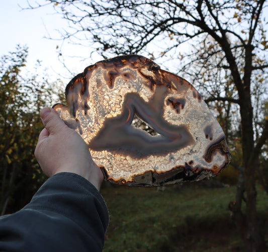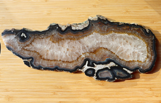Achát s křišťálem oboustranně leštěný plátek