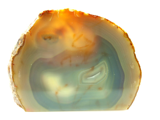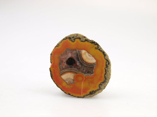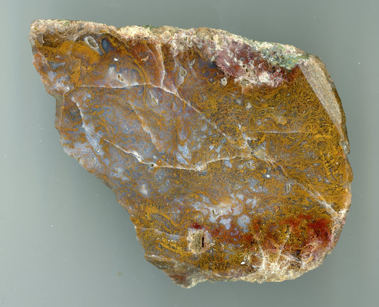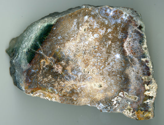 Surový pestrobarevný mechový achát s kupovitými krystaly chalcedonu