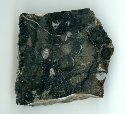 Vápenec se zbytky zkamenělin, leštěný