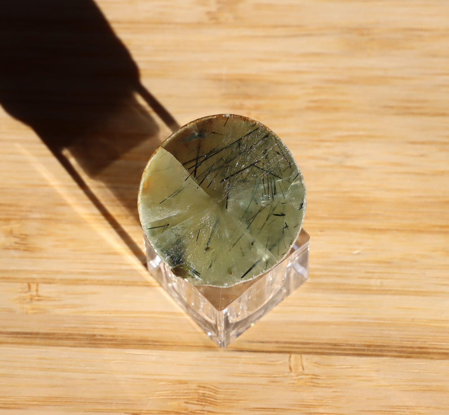 Broušený kabošon zasazený do postříbřeného kovu (měď nebo bronz). Ryzost stříbra je 925/1000.