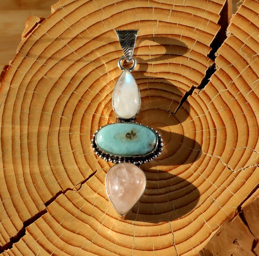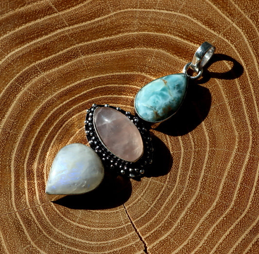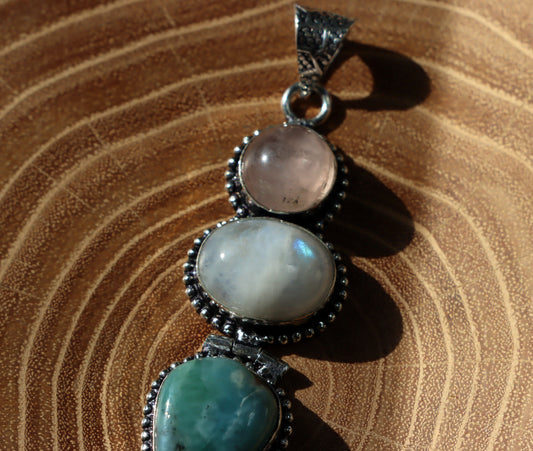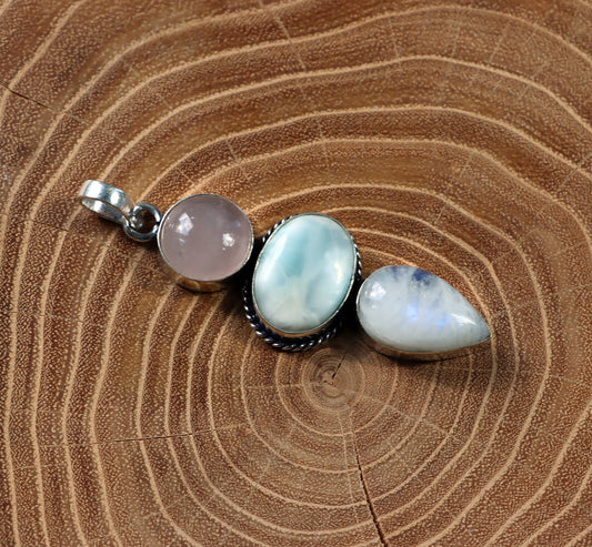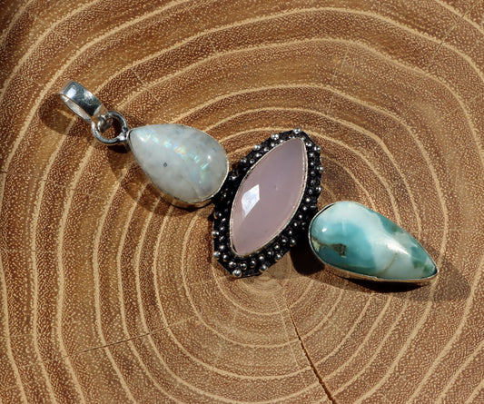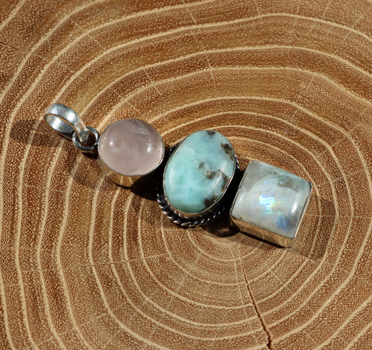 Přívěšek larimar fazetovaný růženín měsíční kámen