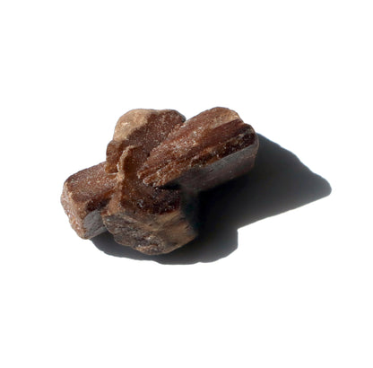 X krystal s typickým tvarem. Známý svými srůsty do klínových nebo křížových (X) dvojčat. Výrazný metamorfní minerál ceněný mezi sběrateli.