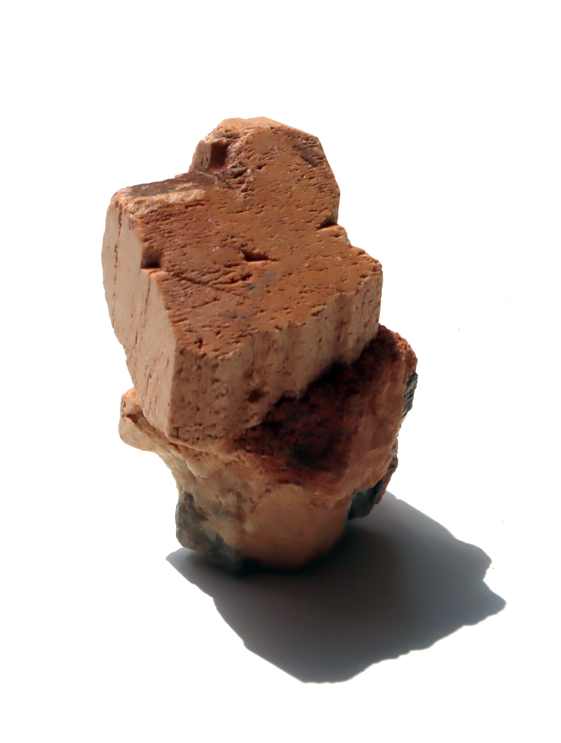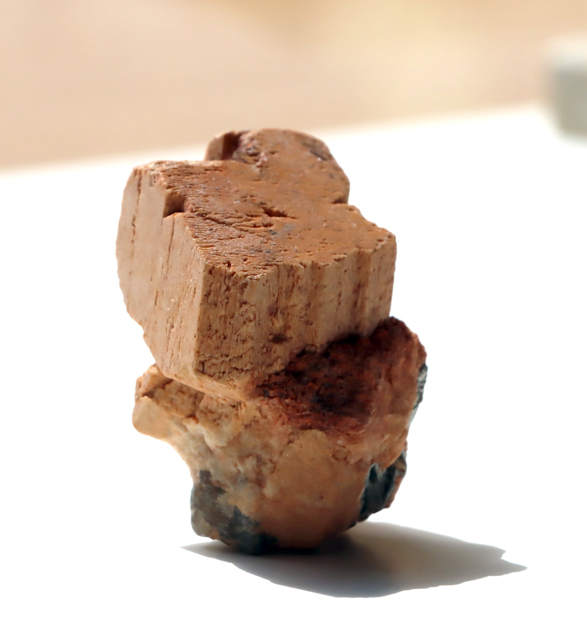 Ortoklas – karlovarské dvojče na pegmatitové podložce Výrazný krystal ortoklasu ve formě karlovarského dvojčete, pevně uložený na pegmatitové mateční hornině. Typická ukázka dvojčatného srůstu živce s vysokou sbírkovou hodnotou. Pochází z mongolských stepí.