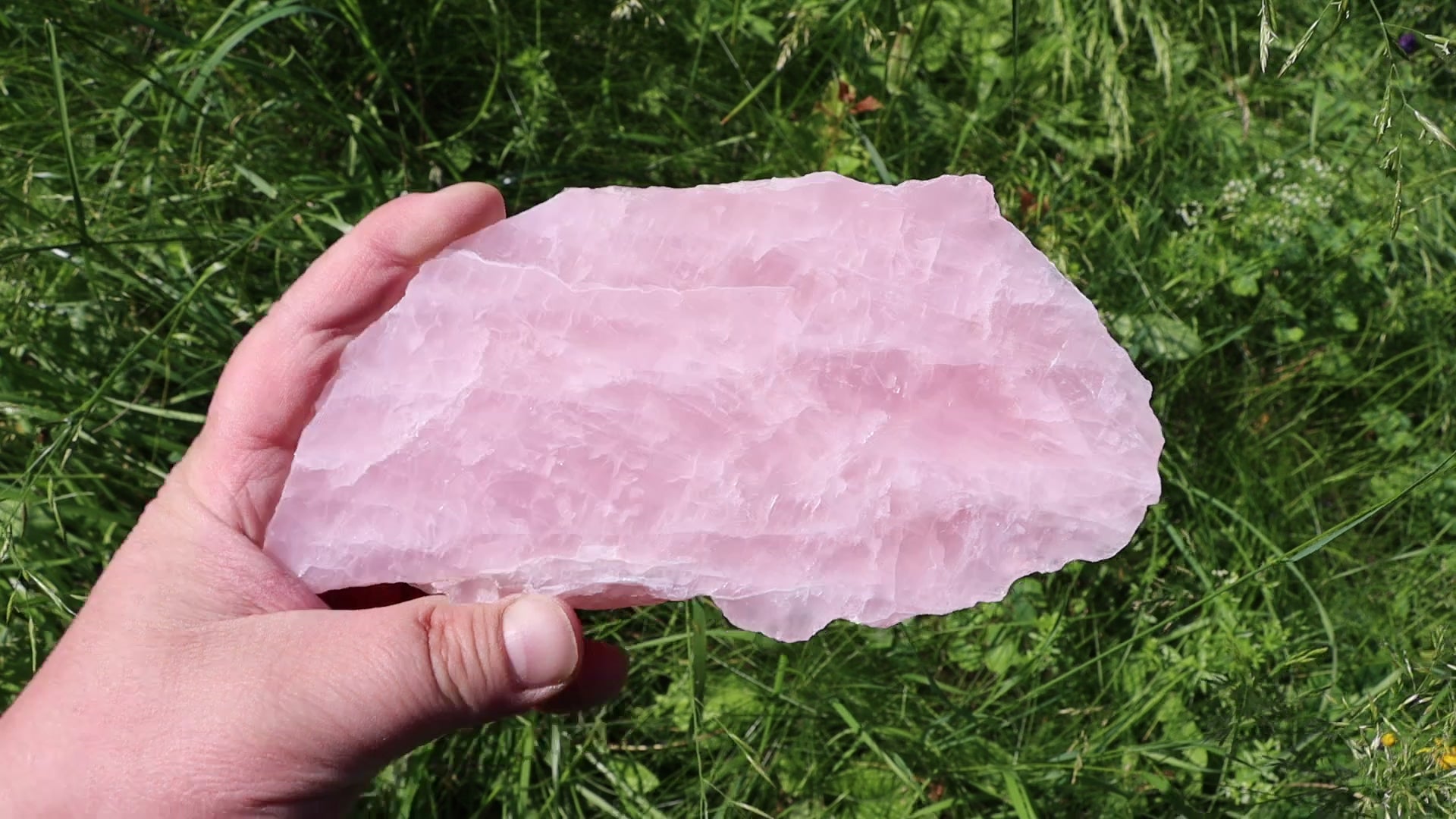 Na fotografii je leštěný plátek růženínu s typickou sytě růžovou barvou. Povrch kamene je hladce vyleštěný, což zvýrazňuje jeho jemně vláknitou až zakalenou strukturu, danou příměsí mikroskopických inkluzí.