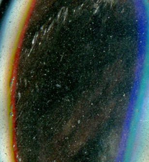 Iridescence v čiré formě – na černém skle se v lomu světla objevují barevné záblesky nejčastěji hnědé barvy. Efekt působí magicky a hluboce vnitřně.