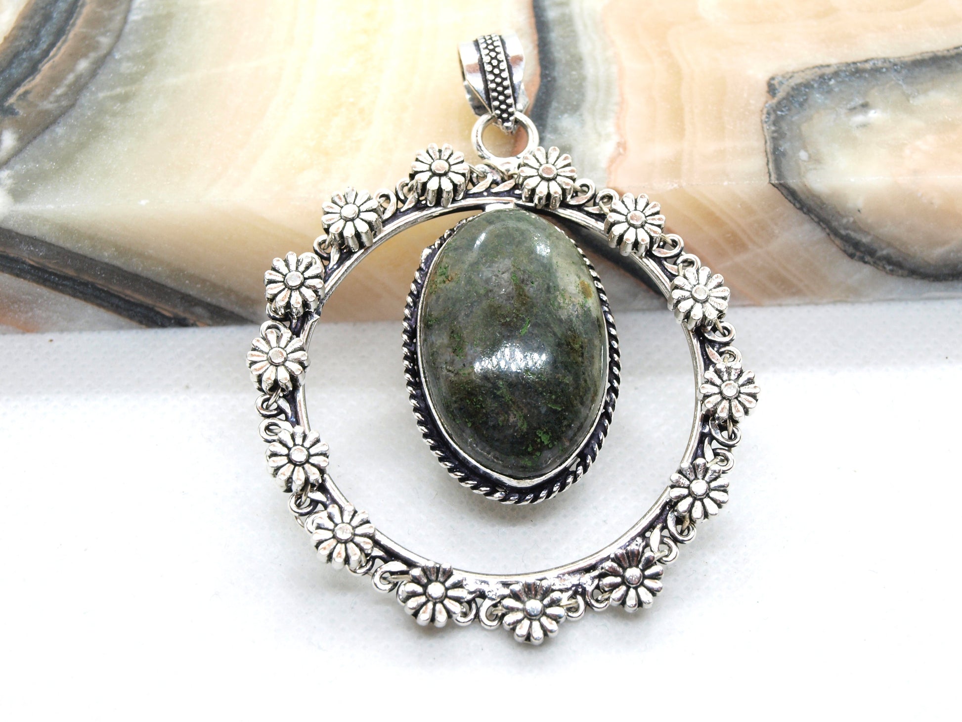 Broušený kabošon zasazený do postříbřeného kovu (měď nebo bronz). Ryzost stříbra je 925/1000.