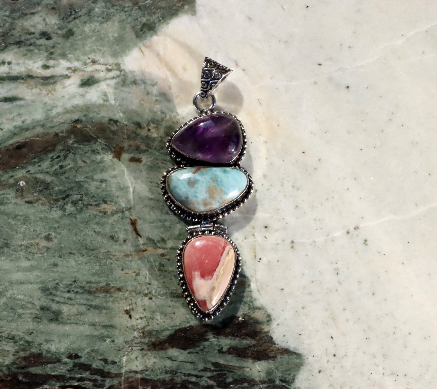 Přívěšek ametyst larimar rodochrosit