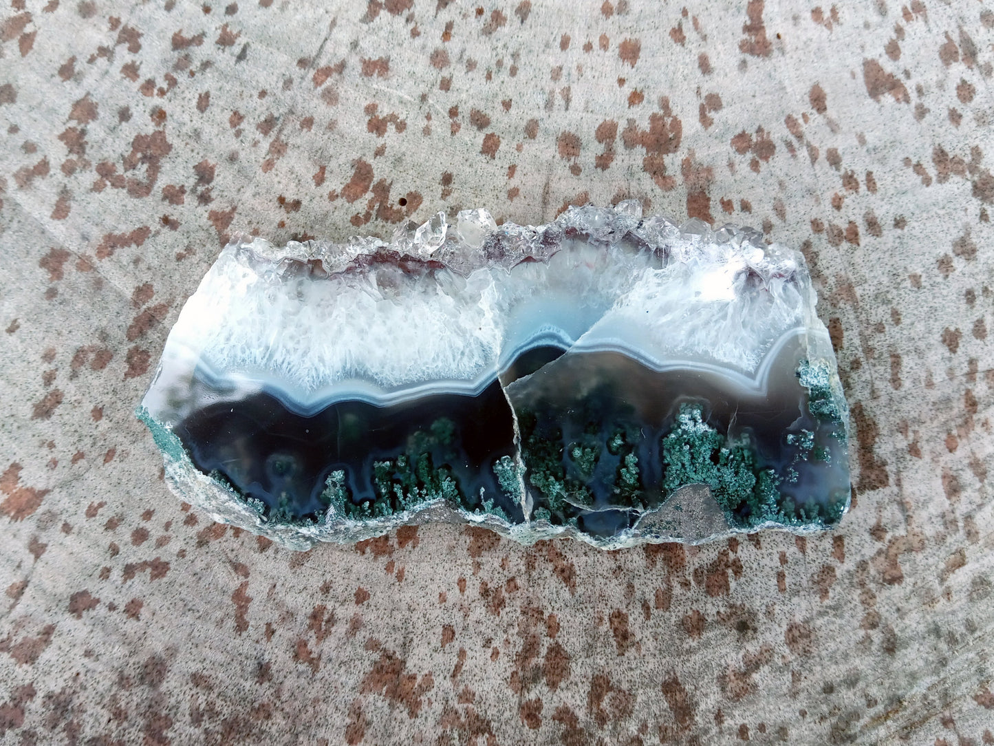 Leštěný ametyst s mechovým achátem
