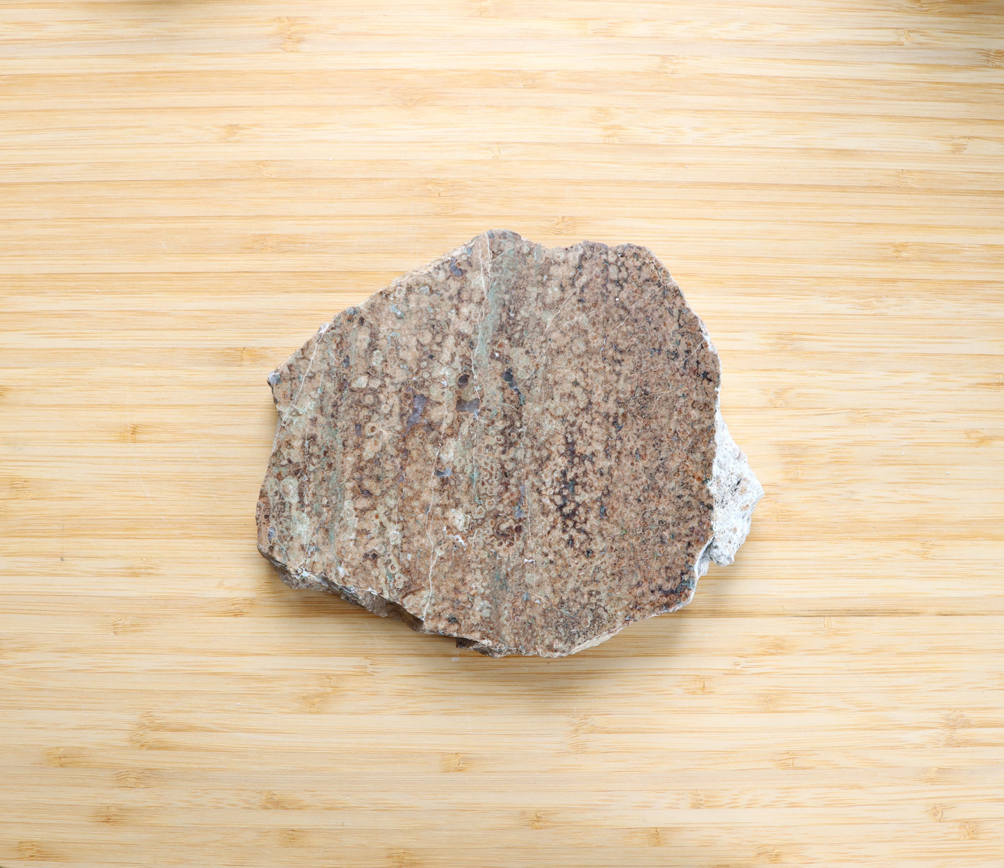 Broušený kabošon zasazený do postříbřeného kovu (měď nebo bronz). Ryzost stříbra je 925/1000.