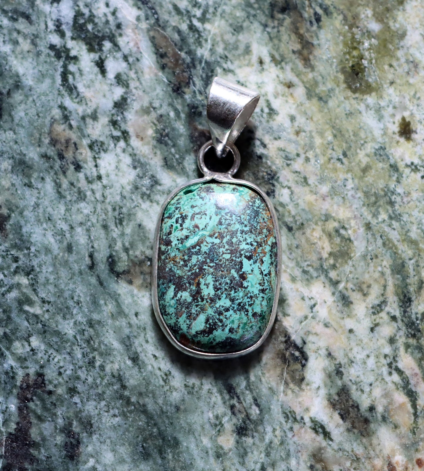Objevte nadčasovou eleganci a přírodní krásu s naším jednoduchým přívěškem z chrysokolu. Tento jedinečný kámen, známý svými okouzlujícími odstíny modré a zelené, je symbolem klidu, moudrosti a vyrovnanosti. Chrysokol je ceněný pro své uklidňující účinky a schopnost podporovat harmonii a pozitivní energii. Náš minimalistický design umožňuje kráse chrysokolu vyniknout a dodá vašemu vzhledu jemný, ale výrazný akcent. Perfektní dárek pro milovníky přírodních šperků, kteří oceňují jednoduchost a eleganci. Pořiďte si tento přívěšek a nechte se unášet kouzlem přírody každý den.