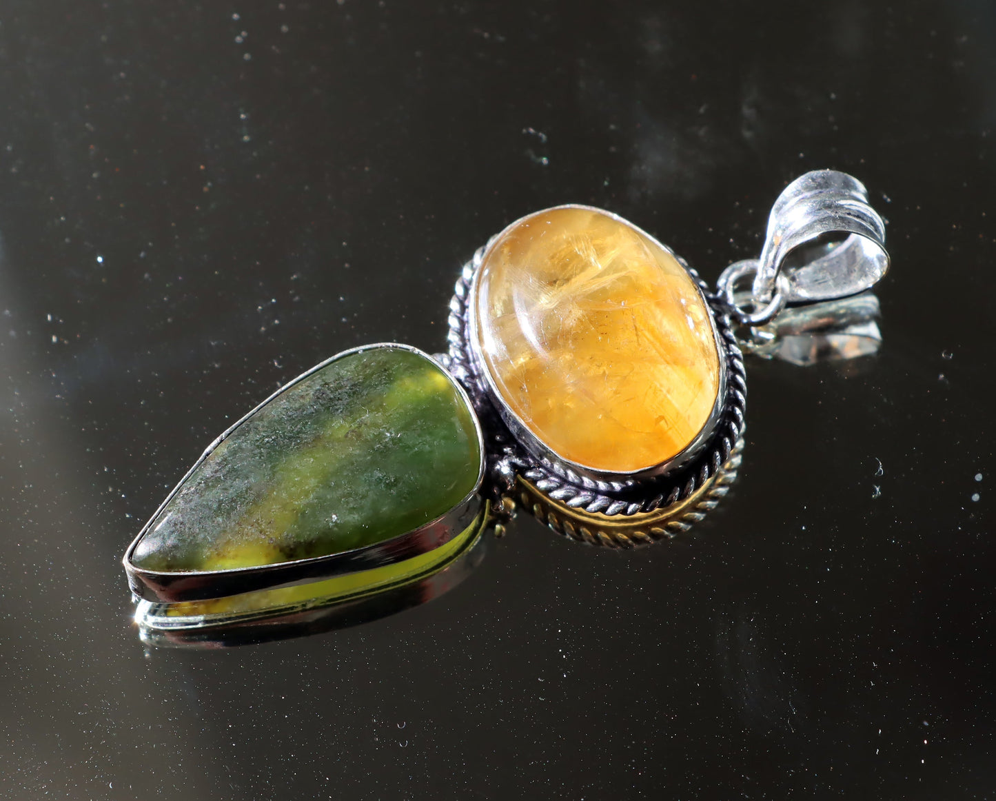 Kombinace citrínu a nefritu vytváří amulet, který spojuje pozitivní energii s harmonizující a uzdravující silou. Citrín je známý svou schopností přinášet radost, úspěch a pozitivní myšlení. Podporuje kreativitu, sebedůvěru a pomáhá při manifestaci cílů, zatímco jeho energie zvyšuje motivaci a přitahuje příležitosti. Nefrit, na druhé straně, je tradičně spojen s harmonií, zdravím a uzdravováním. Pomáhá při udržování vnitřní rovnováhy, posiluje imunitní systém a přináší klid.