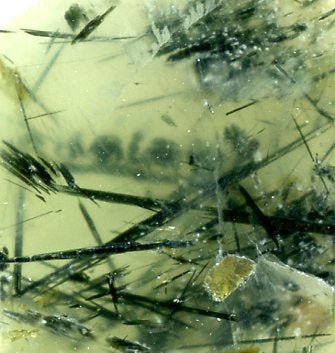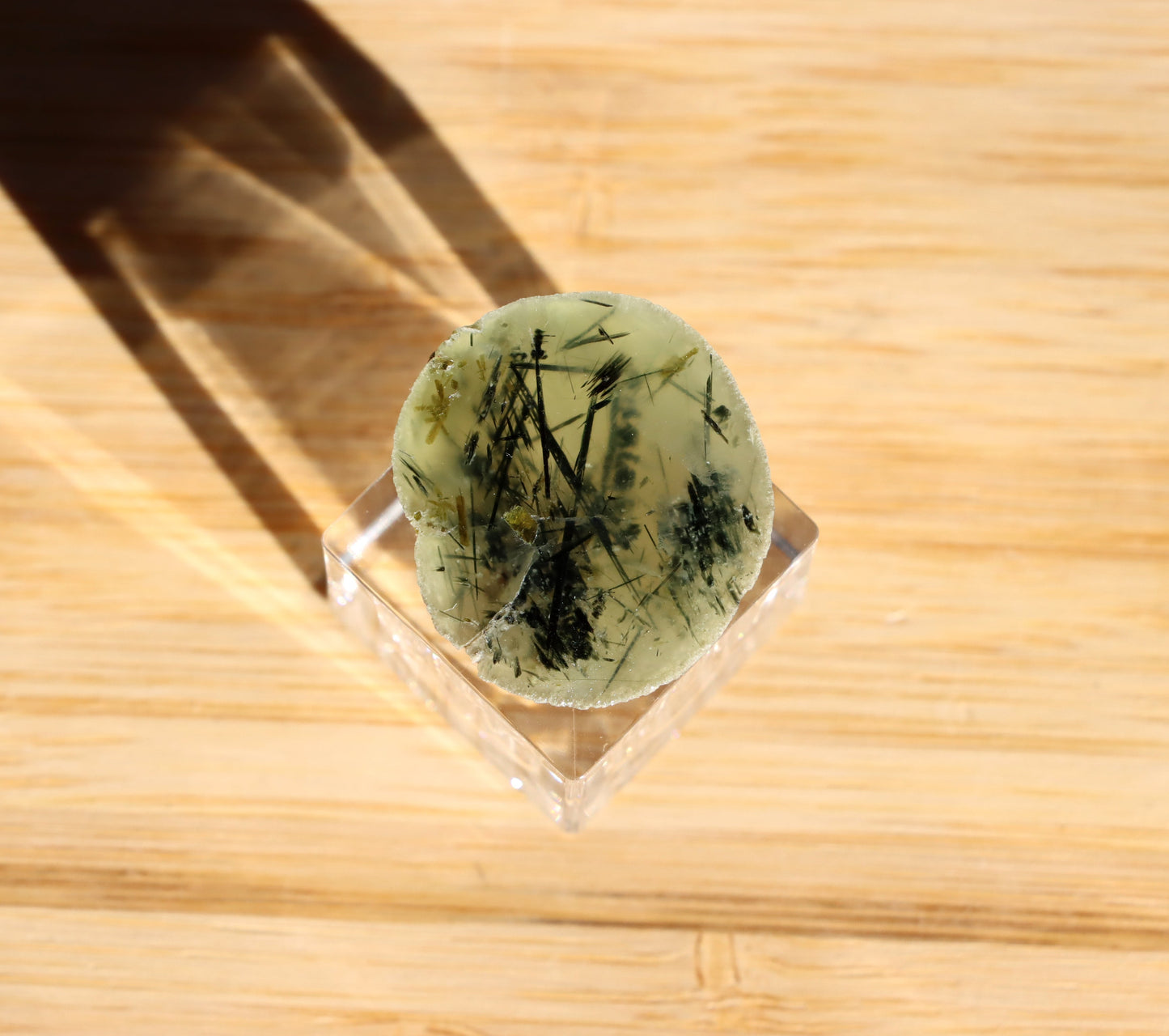 Broušený kabošon zasazený do postříbřeného kovu (měď nebo bronz). Ryzost stříbra je 925/1000.