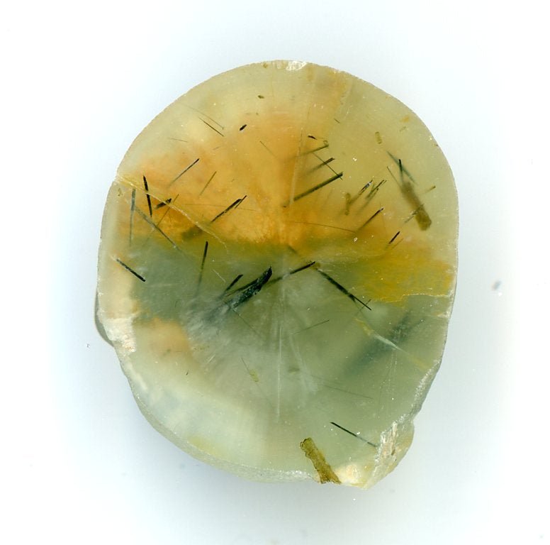 Broušený kabošon zasazený do postříbřeného kovu (měď nebo bronz). Ryzost stříbra je 925/1000.