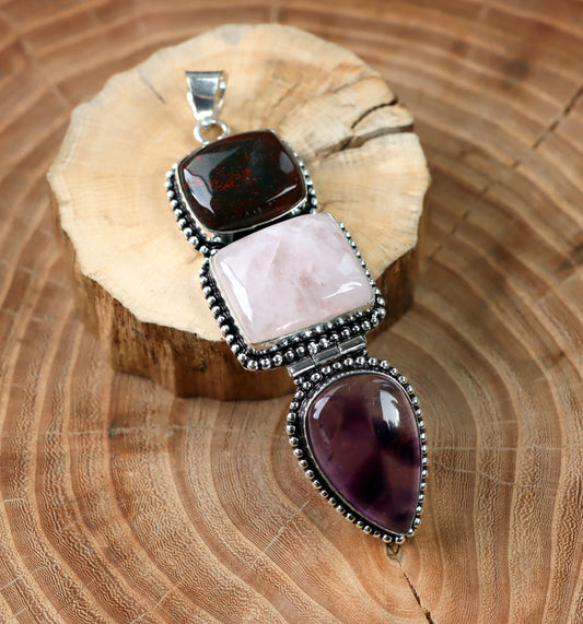 SlevaPřívěšek heliotrop jaspis ametyst růženín