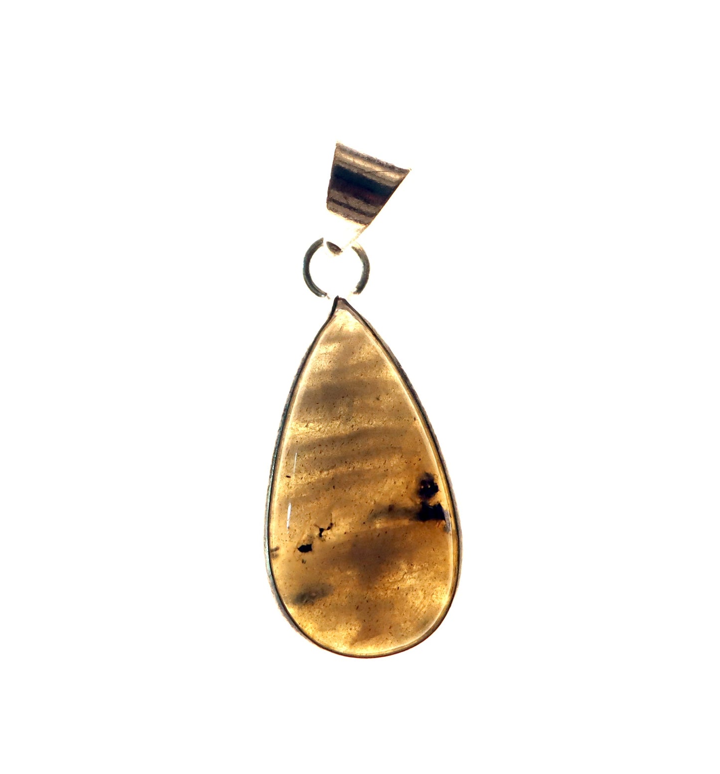 Broušený kabošon zasazený do postříbřeného kovu (měď nebo bronz). Ryzost stříbra je 925/1000.