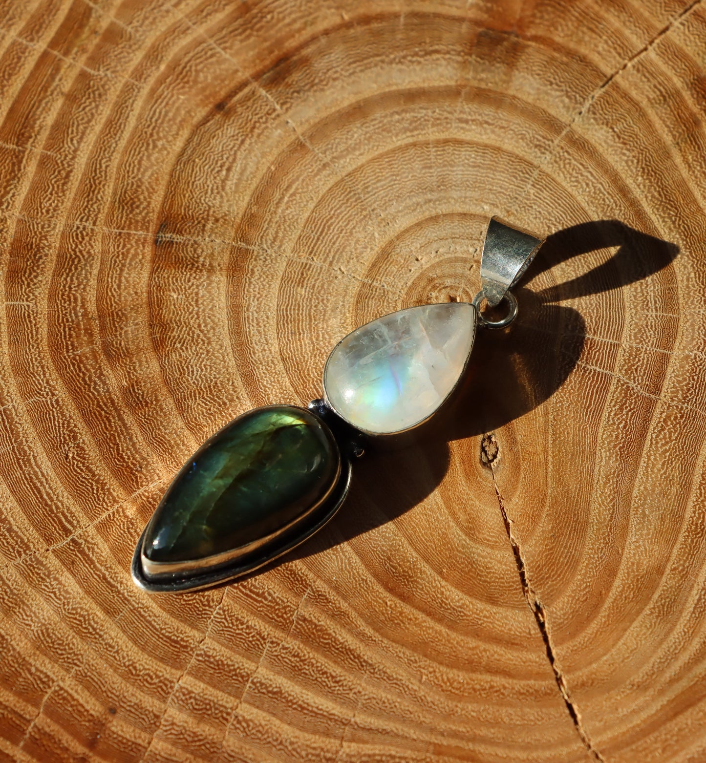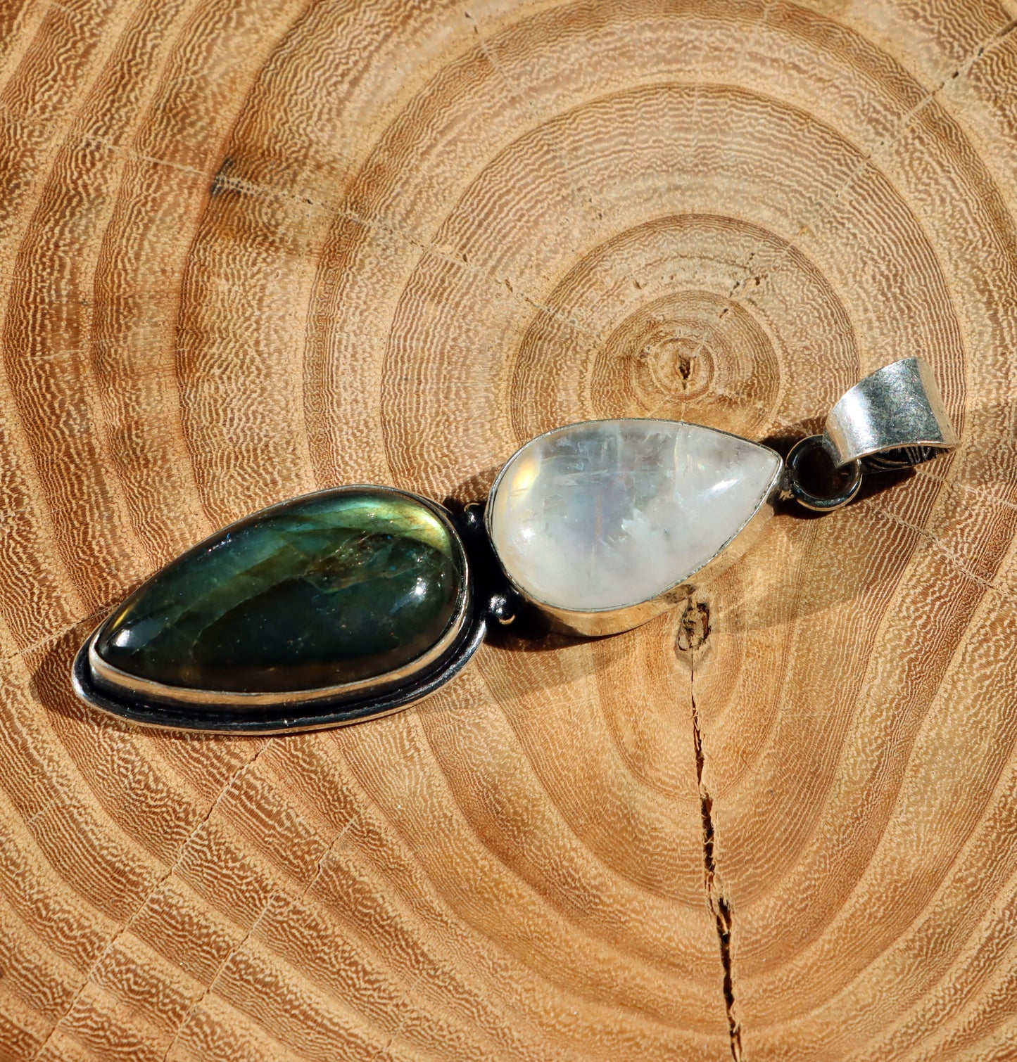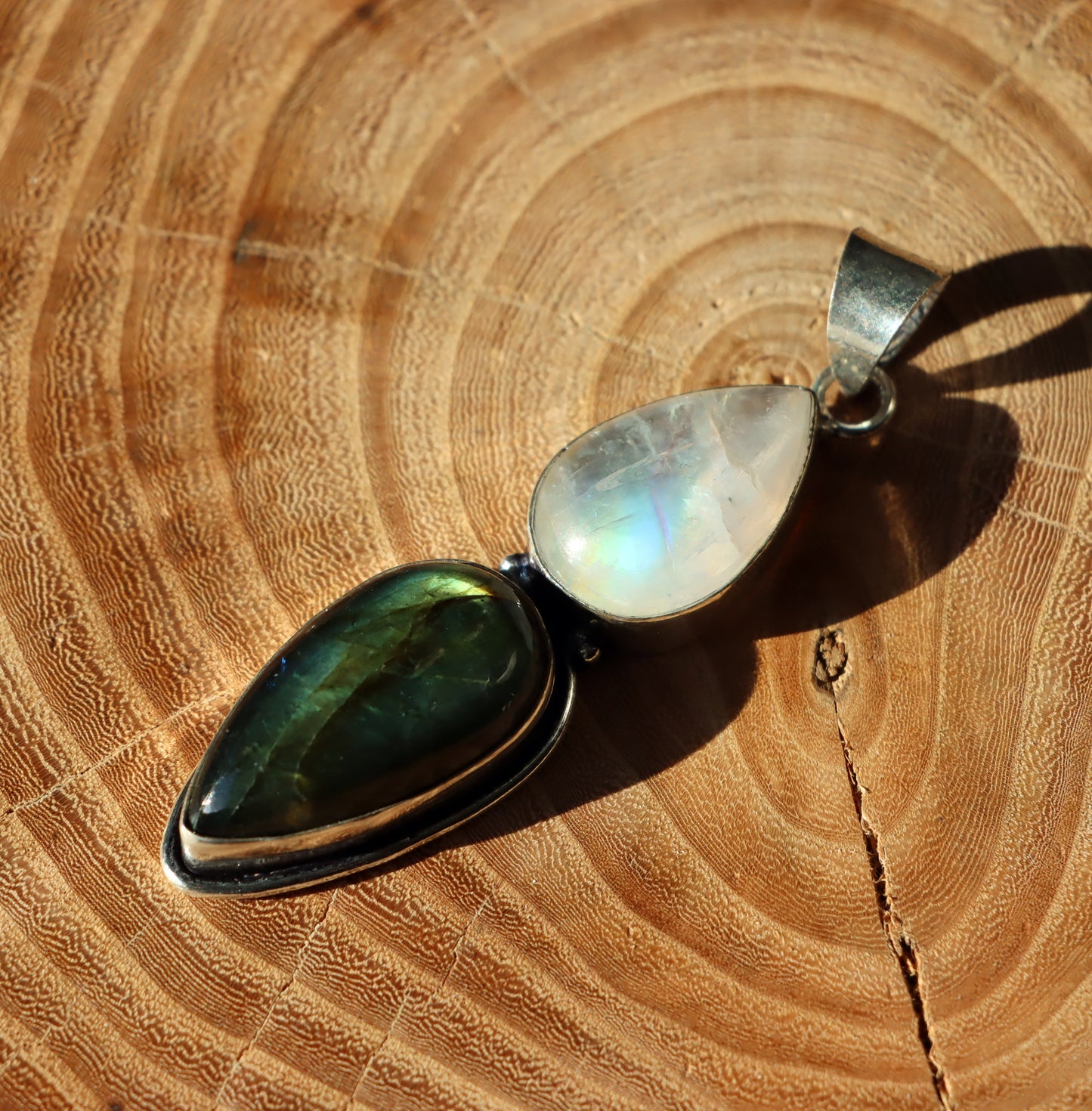 Kombinace těchto kamenů přináší hluboké propojení intuice, ochrany a emocionální stability. Zatímco labradorit poskytuje ochranu a posiluje vnitřní sílu, měsíční kámen přináší klid, harmonii a podporuje propojení s vlastními emocemi a přirozenými cykly. Společně mohou tyto kameny tvořit mocný amulet, který podporuje duchovní růst, harmonii a emocionální rovnováhu, zatímco zároveň chrání před negativními vlivy.