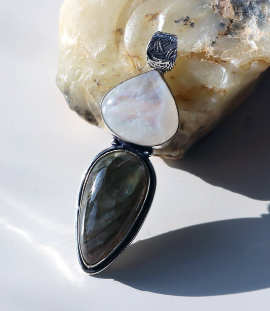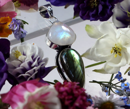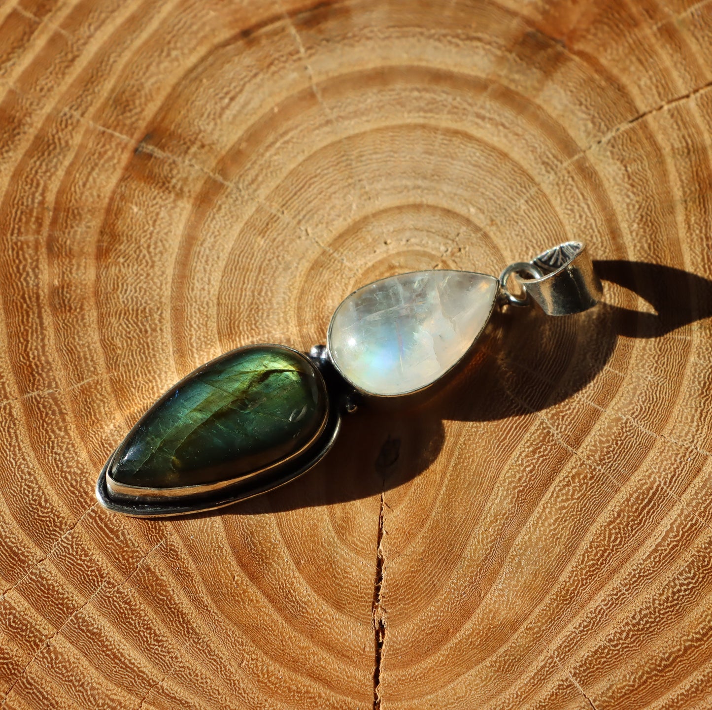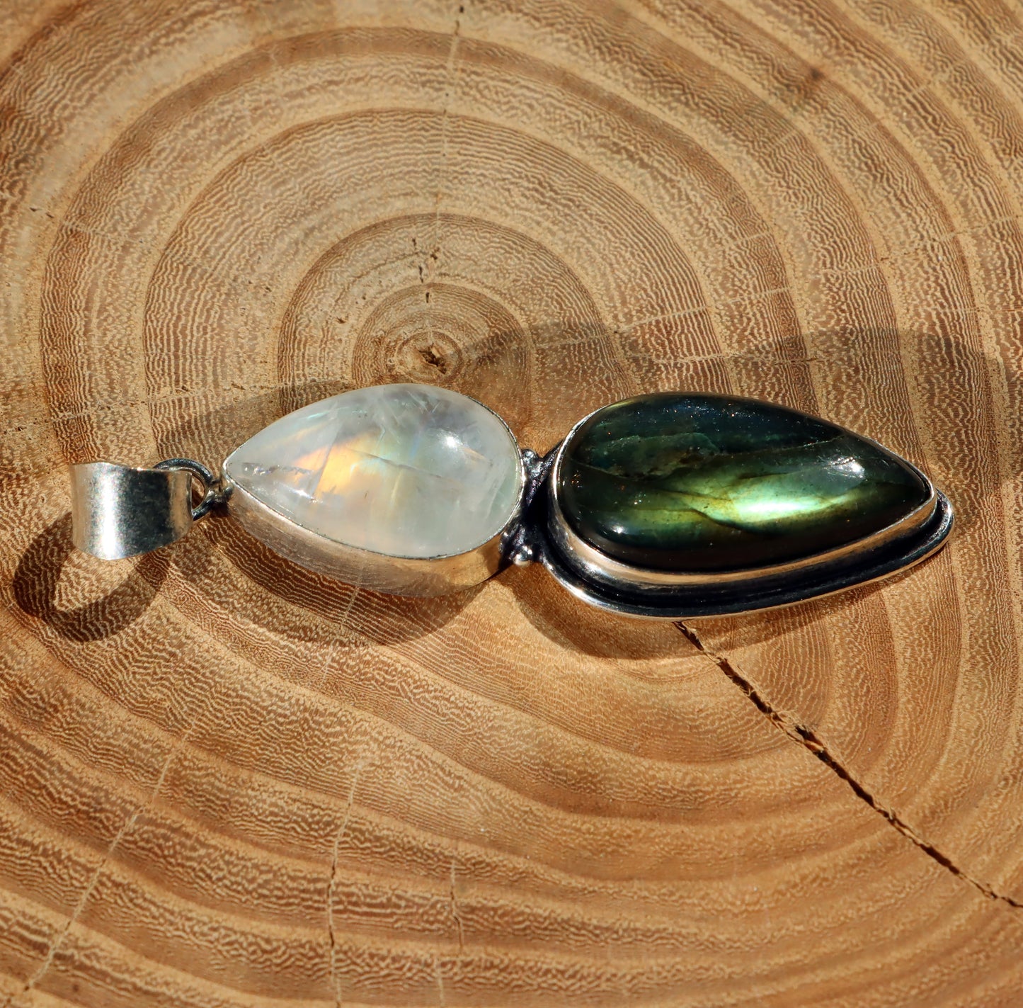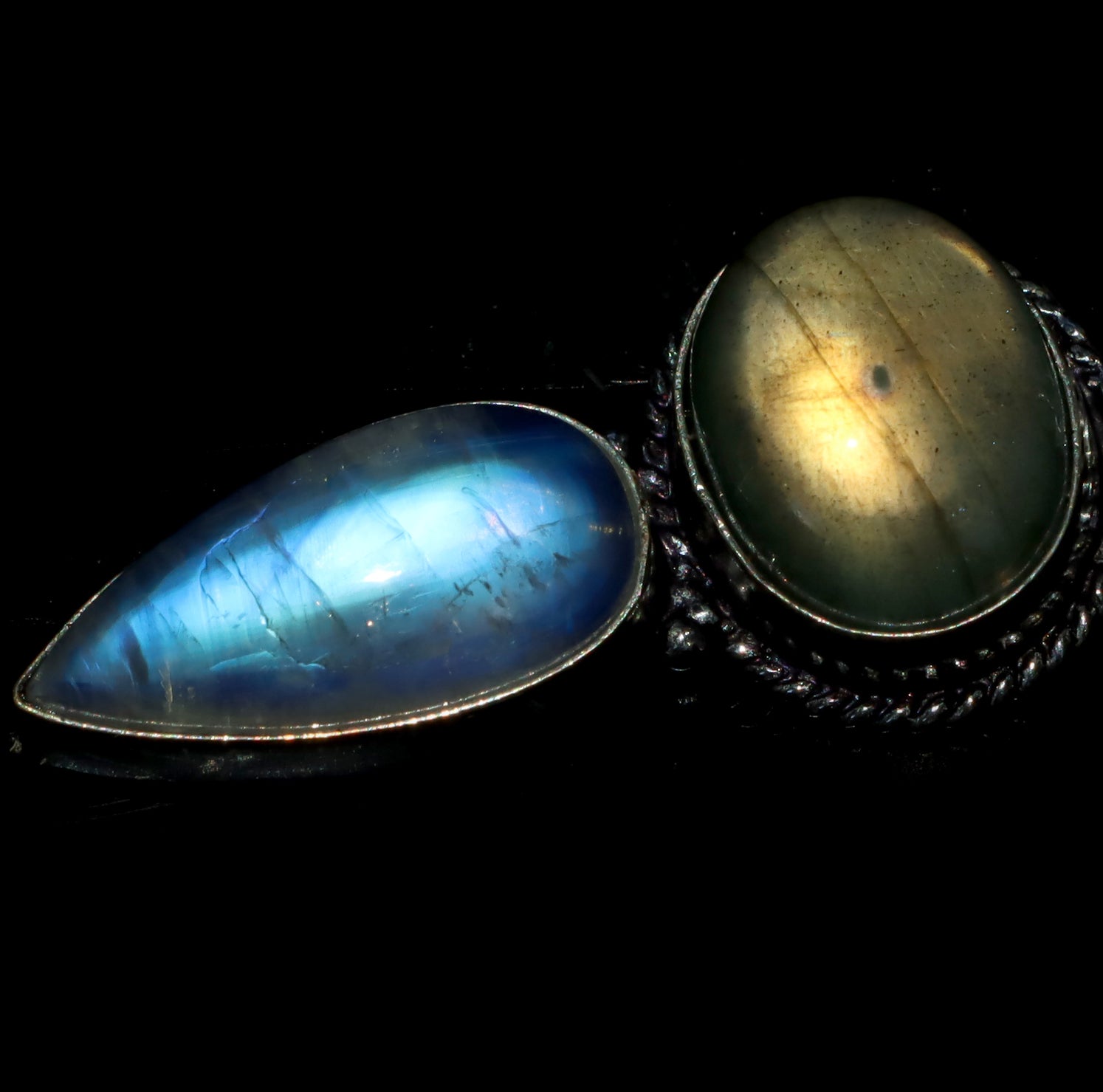 Kombinace těchto kamenů přináší hluboké propojení intuice, ochrany a emocionální stability. Zatímco labradorit poskytuje ochranu a posiluje vnitřní sílu, měsíční kámen přináší klid, harmonii a podporuje propojení s vlastními emocemi a přirozenými cykly. Společně mohou tyto kameny tvořit mocný amulet, který podporuje duchovní růst, harmonii a emocionální rovnováhu, zatímco zároveň chrání před negativními vlivy.