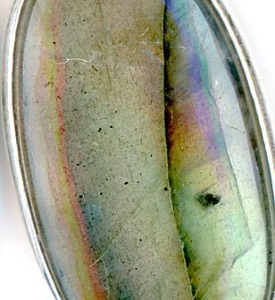 Broušený kabošon zasazený do postříbřeného kovu (měď nebo bronz). Ryzost stříbra je 925/1000.