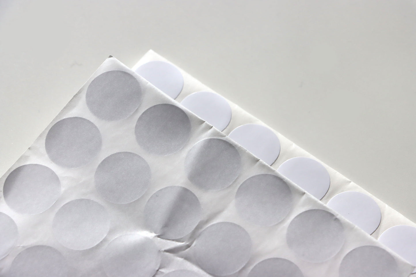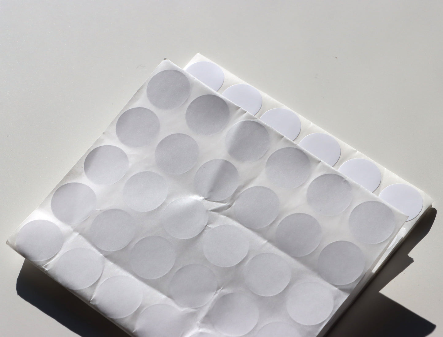 Bílé kulaté lepicí štítky (250 ks) – Praktické samolepicí štítky pro snadné popisování a organizaci. Vhodné na označování vzorků, krabiček nebo dokumentů.