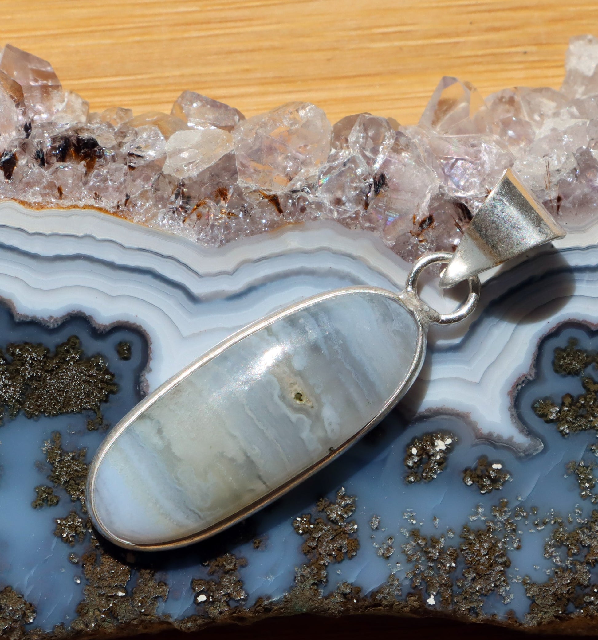 Přívěšek achát modrý krajkový