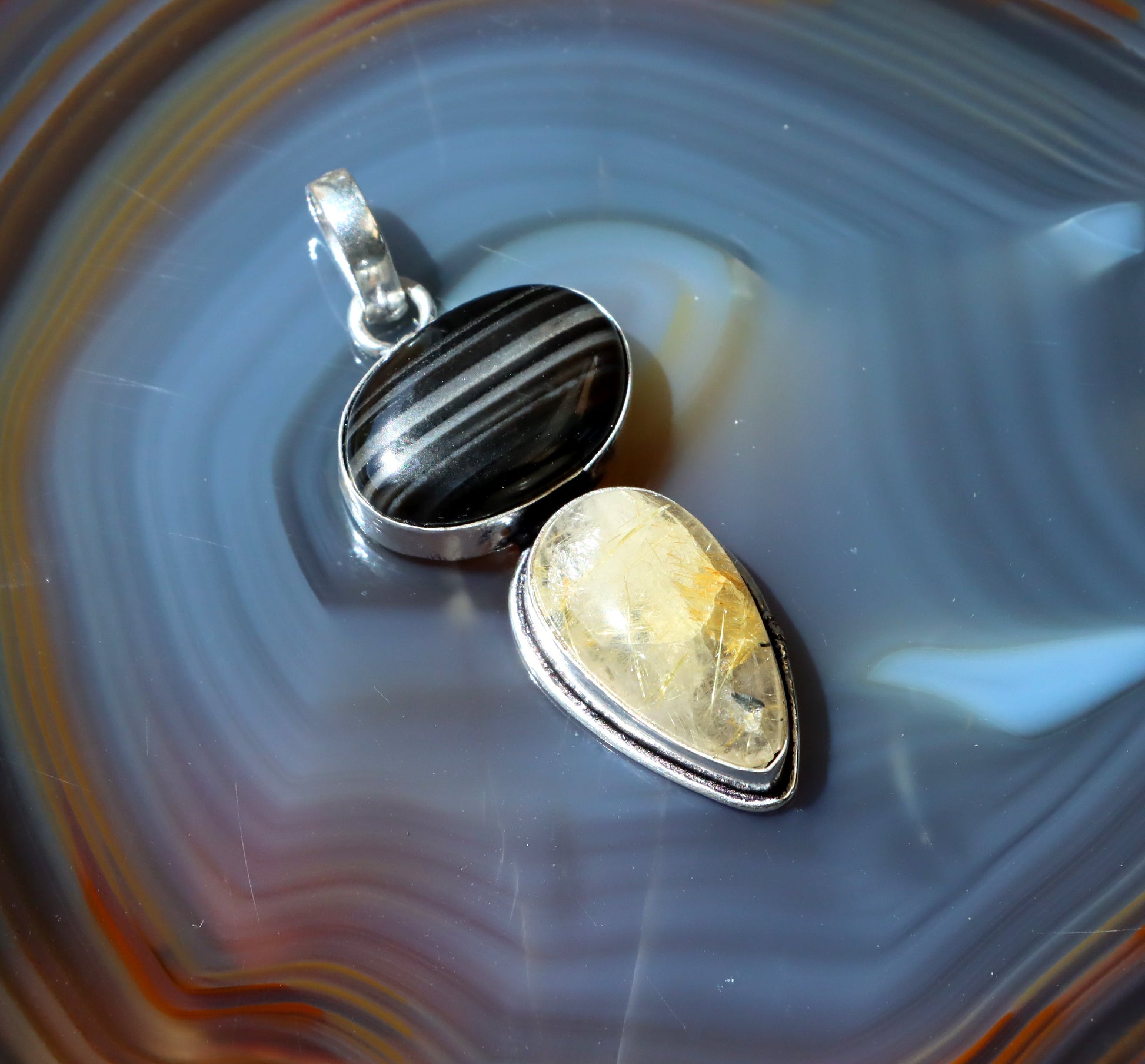 Spojení rutilu v křišťálu a páskovaného onyxu nabízí vyváženou kombinaci ochrany, síly a duchovní čistoty. Rutil v křišťálu zesiluje energii a přináší jasnost myšlenek, zatímco páskovaný onyx dodává stabilitu, sílu a ochranu před negativními vlivy. Křišťál s rutilovými jehličkami navíc podporuje duchovní růst a harmonizuje energii, zatímco onyx pomáhá překonávat výzvy a podporuje vnitřní disciplínu. Tato kombinace je ideální pro ty, kteří chtějí posílit svou vnitřní sílu a zároveň si zachovat duchovní rovnováhu a čistotu.