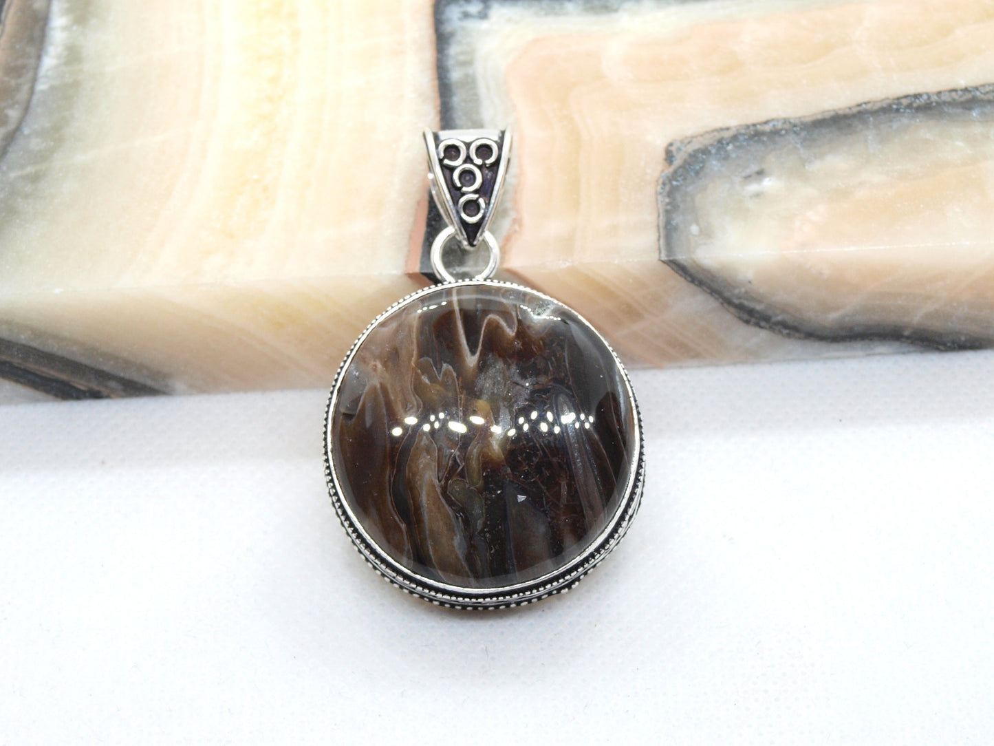 Přívěšek opalizovaná rašelina se zbytky stonku