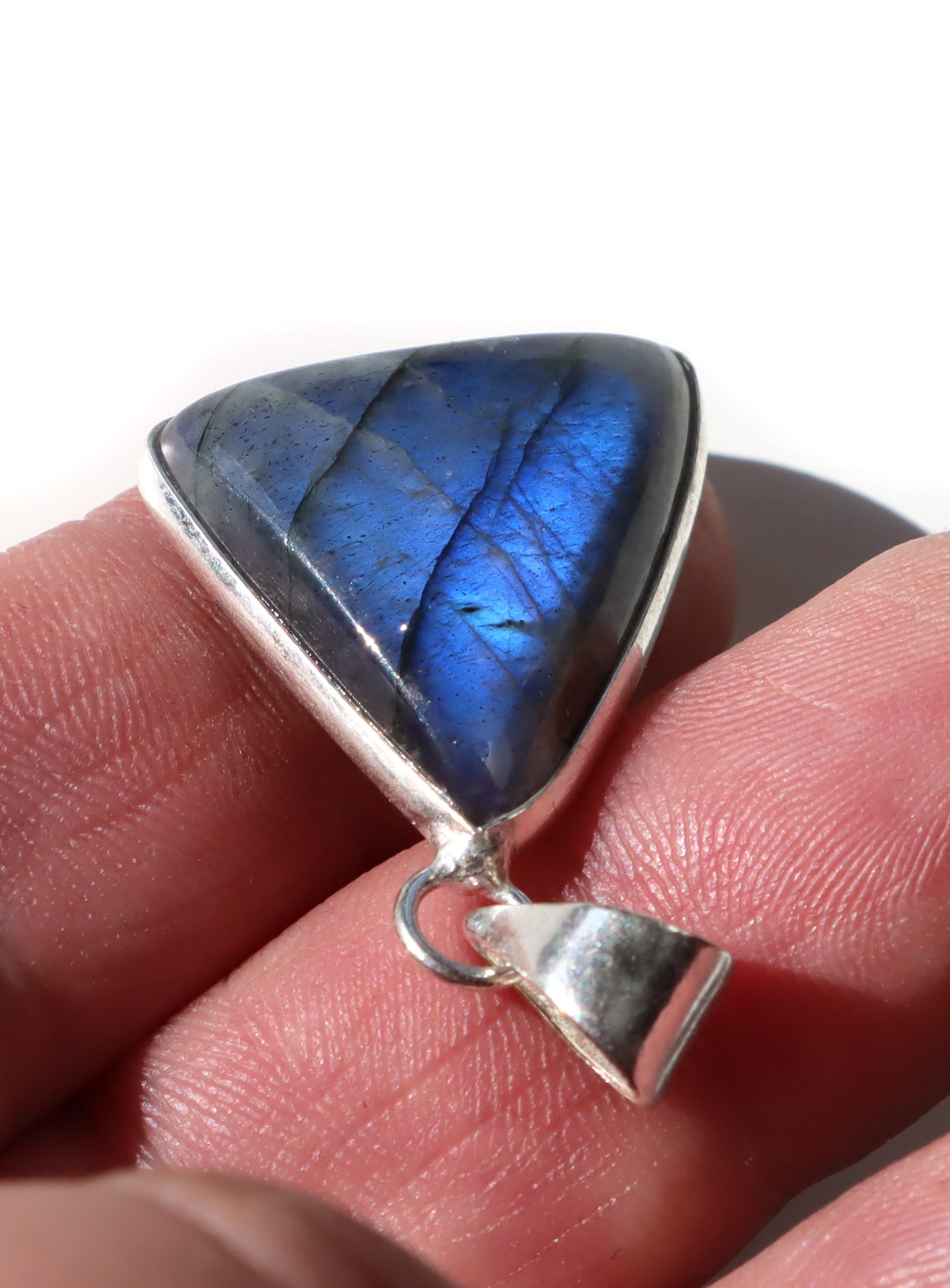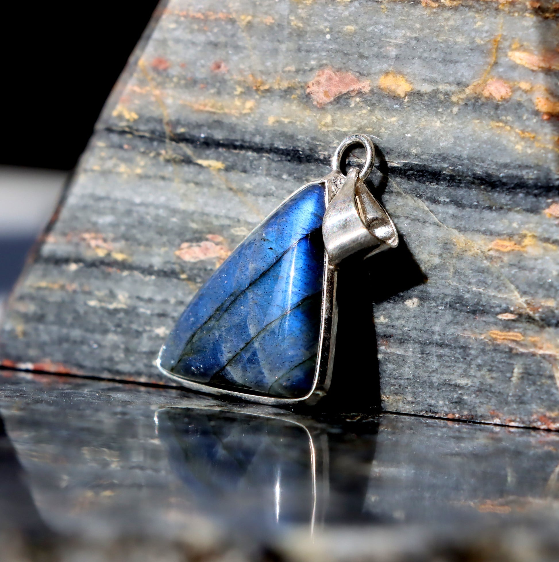 Decentní přívěsek z labradoritu s typickým duhovým leskem v odstínech modré a zelené. Kámen je spojován s ochranou, intuicí a posílením vnitřní síly. Skvělý jako nenápadný doplněk i osobní talisman.
