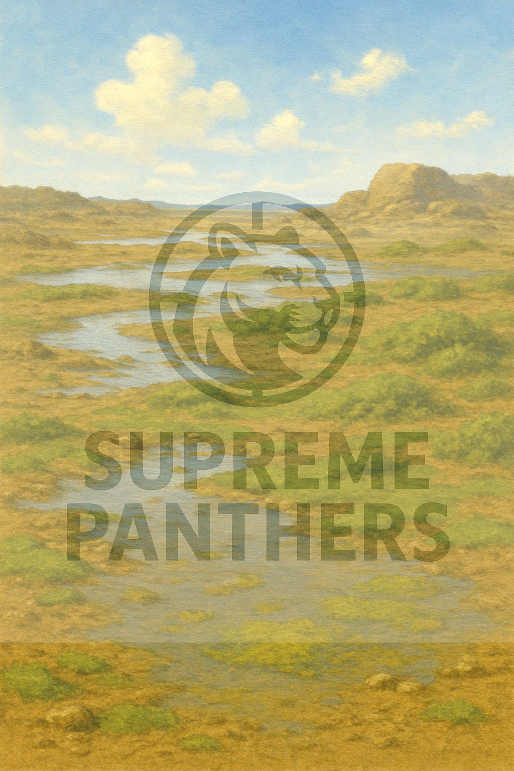 Rekonstrukce ordovické bažinaté souše (vlastní originální práce) Tato autorská rekonstrukce zachycuje vlhké, nízko položené okraje souše v období ordoviku, přibližně před 470 miliony let. Pobřežní krajina je tvořena mělkými tůněmi a mokřady, kde se střídá zvětralý substrát s vlhkou, bahnitou půdou. Při přílivu může docházet k zaplavování mořskou vodou, což zanechává stopy v podobě usazenin a organického materiálu. Na vlhké půdě se místy rozrůstají tmavozelené sinice a mikrobiální rohože. V blízkosti tůní mohou být vyplaveni trilobiti nebo schránky mořských živočichů, avšak pevninské ekosystémy jsou stále velmi chudé a život je soustředěn zejména ve vodním prostředí.