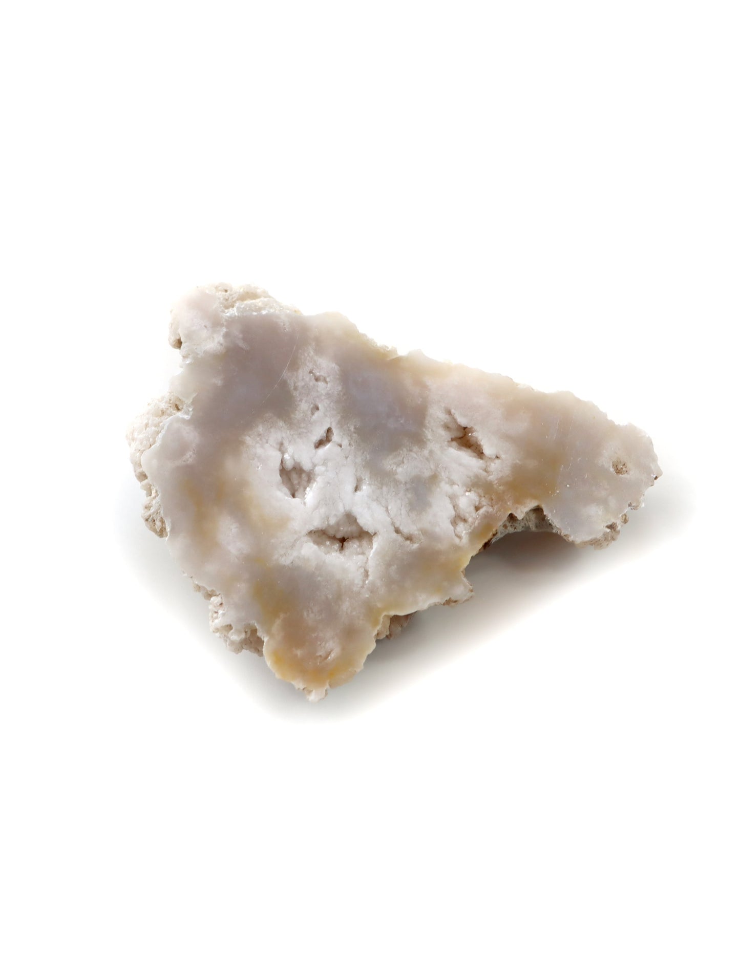 Leštěná rudická geoda s kombinací modrého chalcedonu a křemenné výplně ve formě křišťálu.