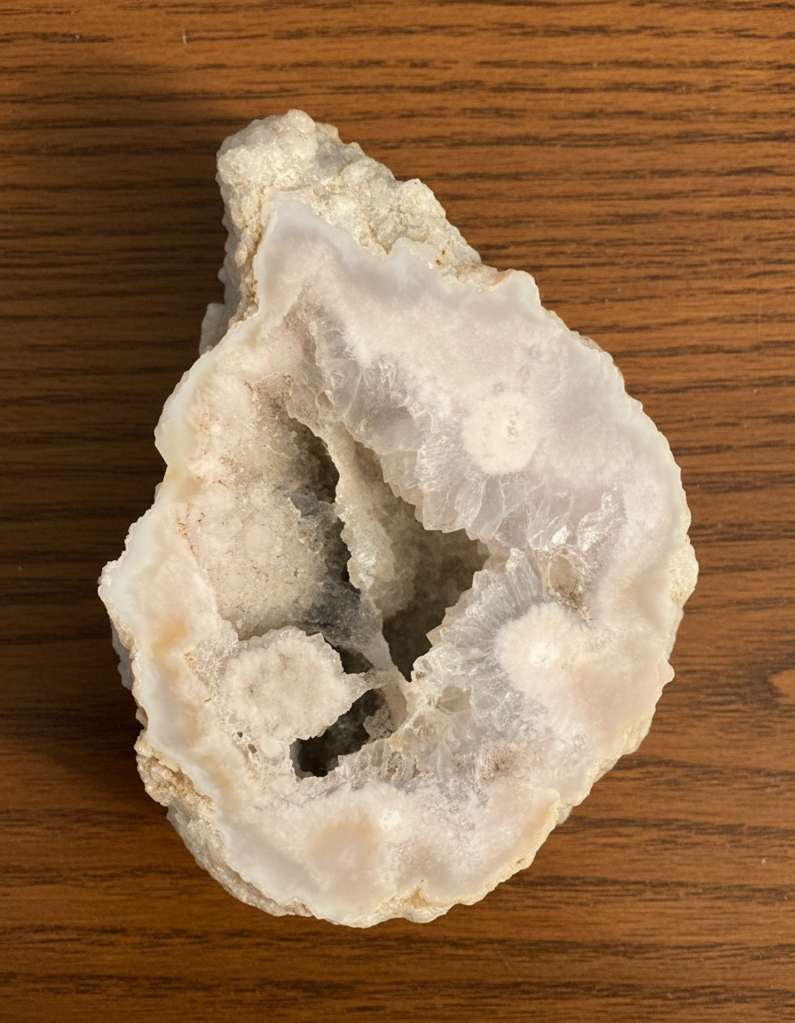Leštěná rudická geoda s vykristalizovaným křišťálem.