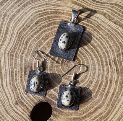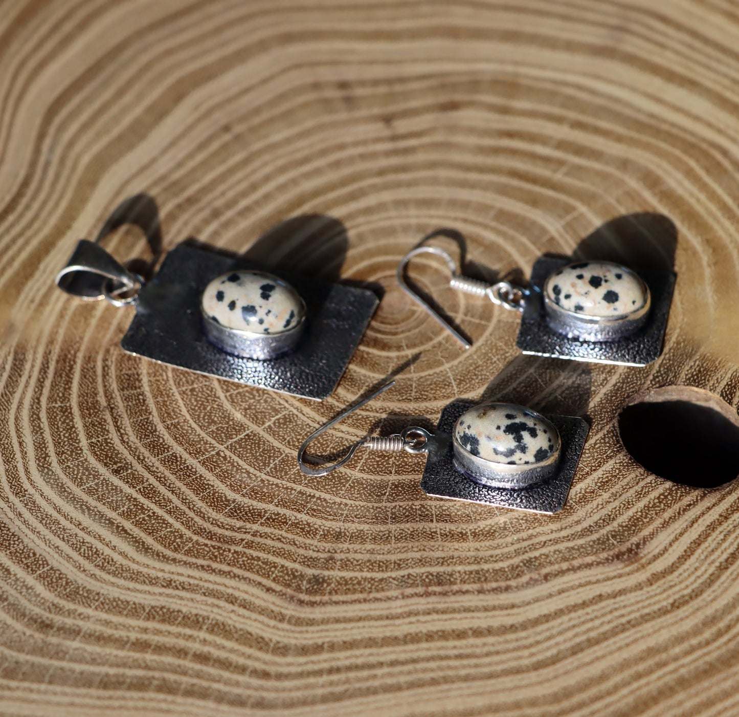 Jaspis Dalmatine je charakteristický svými černými a někdy i hnědými skvrnami ve světlém podkladu, které mu dodávají vzhled podobný psovi Dalmatinovi, odkud také pochází jeho název. Tento kámen kombinuje energie křemene a černého turmalínu, což ho činí silným ochranným a uzemňujícím kamenem. V duchovním světě se jaspis Dalmatine často používá k odstranění negativních energií a posílení pozitivních vibrací. Má také pověst kamenu, který přináší klid mysli a pomáhá při meditaci. Hlavní naleziště jaspisu Dalmatine se nachází v Jižní Africe, USA a Mexiku.